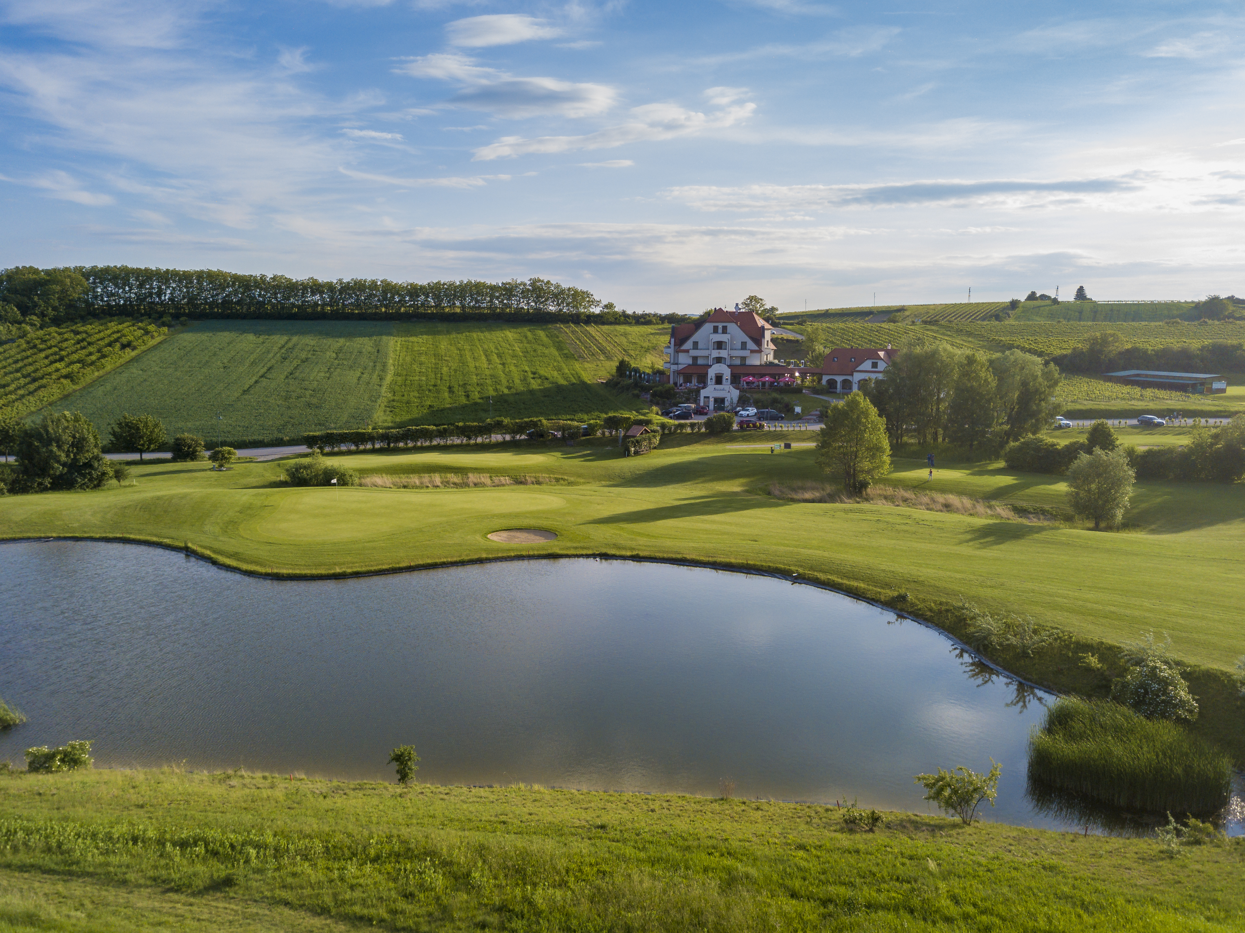 Sanfte Hügel, gepflegte Fairways und Weingärten, so weit das Auge reicht – der Golfclub in Poysdorf verbindet sportliche Herausforderung mit Weinviertler Landschaft.