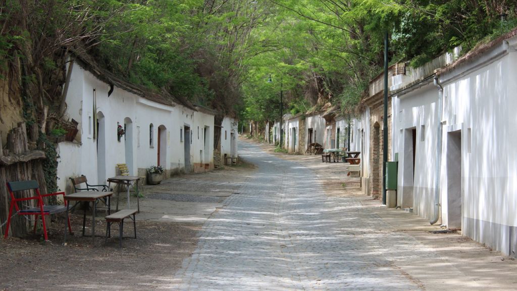 Spaziergang durch eine typische Kellergasse im Weinviertel